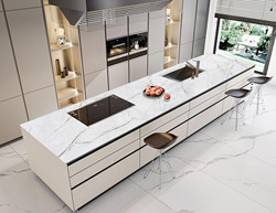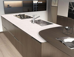 Lastre di pietra sinterizzata bianca come la neve controsoffitti da cucina isole venature grigie pietra sinterizzata bianca