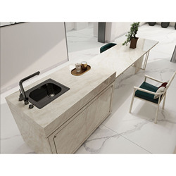 Pierre frittée d'aspect quartzite Taj Mahal, alternative non poreuse à la pierre naturelle, pour comptoir et dessus de table, entretien facile